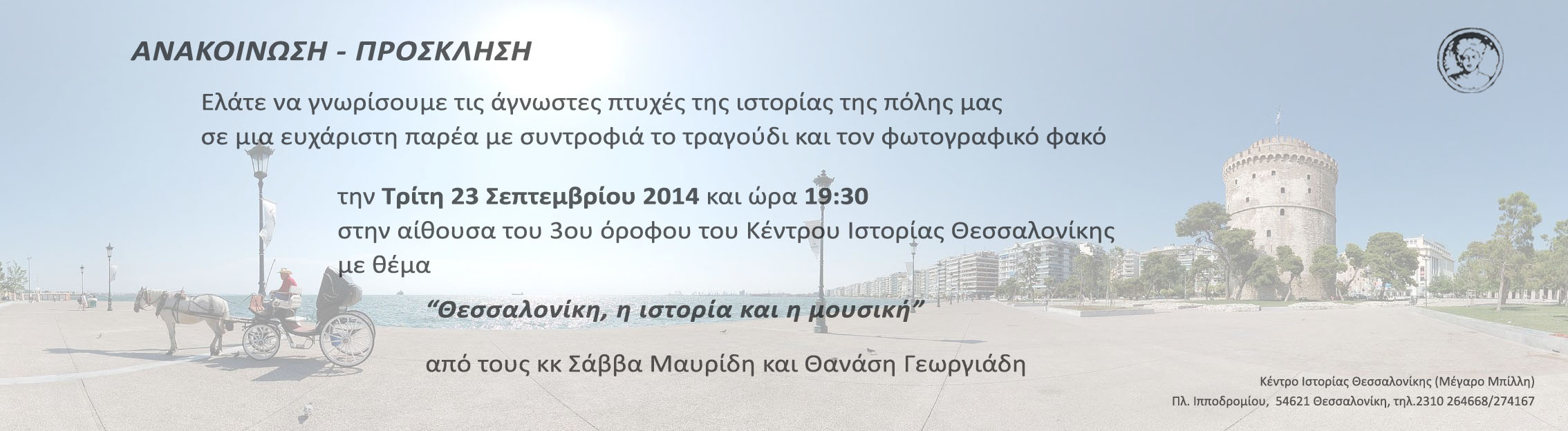 - Ανακοίνωση - Πρόσκληση της εκδήλωσης με θέμα "Θεσσαλονίκη η ιστορία και η μουσική"
