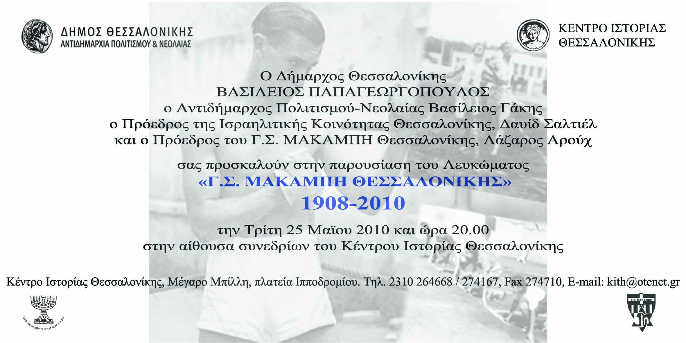 - Πρόσκληση παρουσίασης ιστορικού Λευκώματος «ΜΑΚΑΜΠΗ Θεσσαλονίκης, 1908-2010»