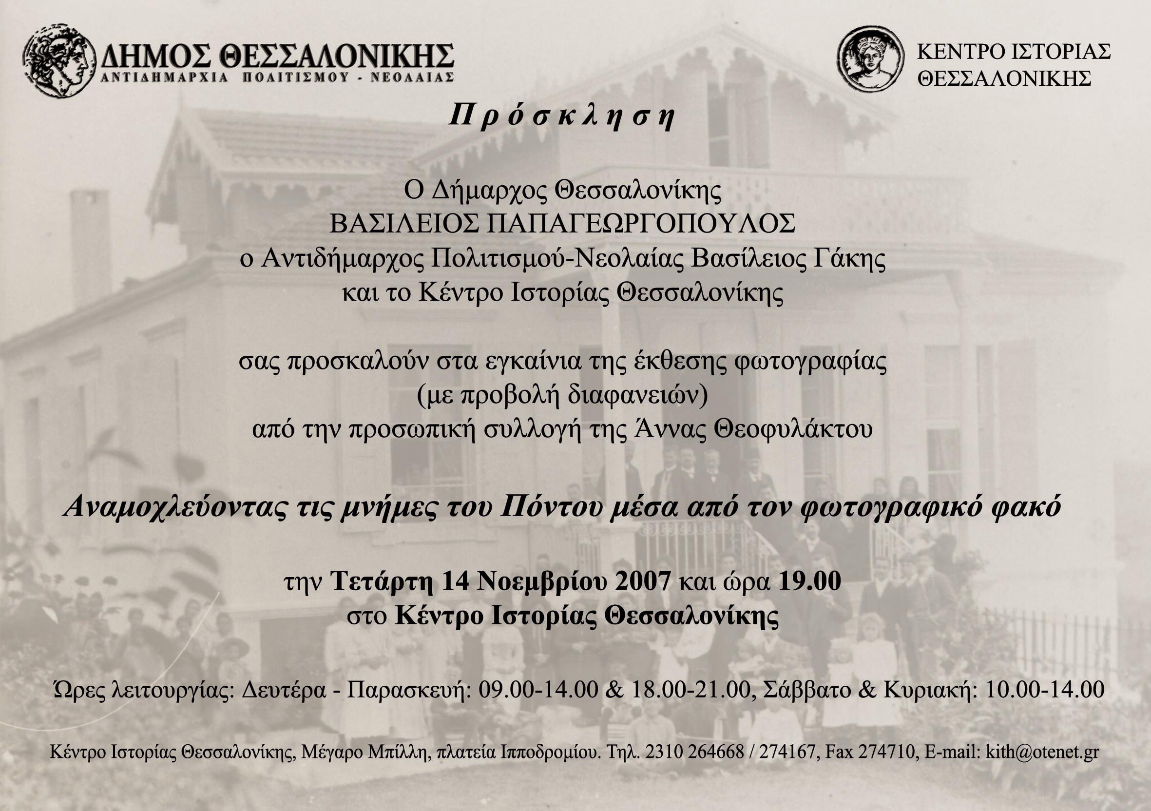 - Πρόσκληση έκθεσης φωτογραφίας "Αναμοχλεύοντας τις μνήμες του Πόντου μέσα από το φωτογραφικό φακό"