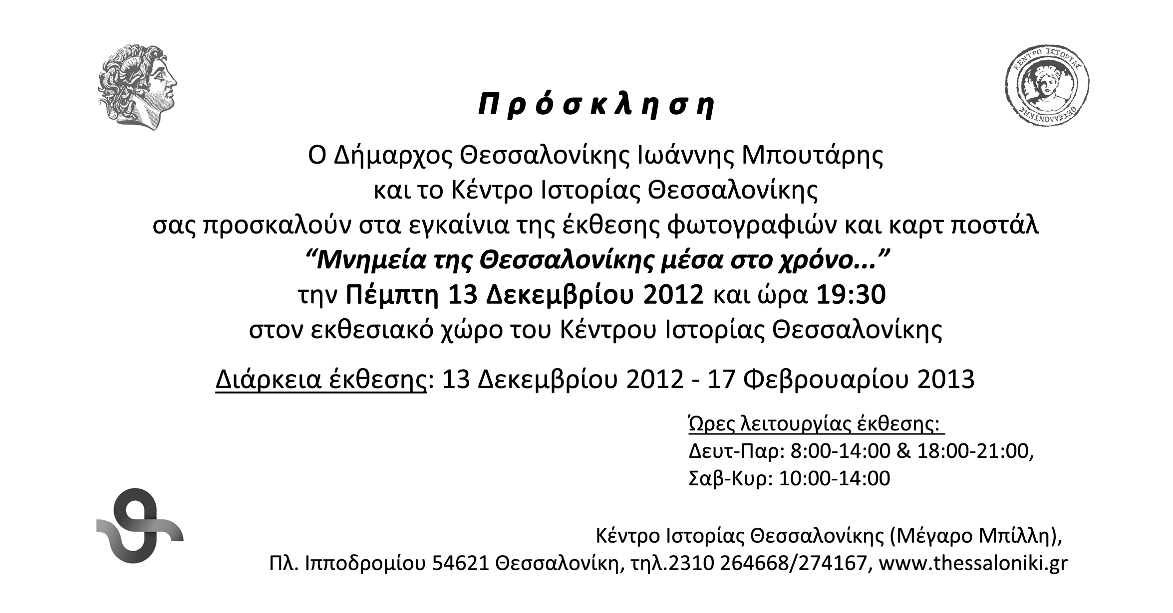 - Πρόσκληση έκθεσης "Μνημεία της Θεσσαλονίκης μέσα στο χρόνο ...... "