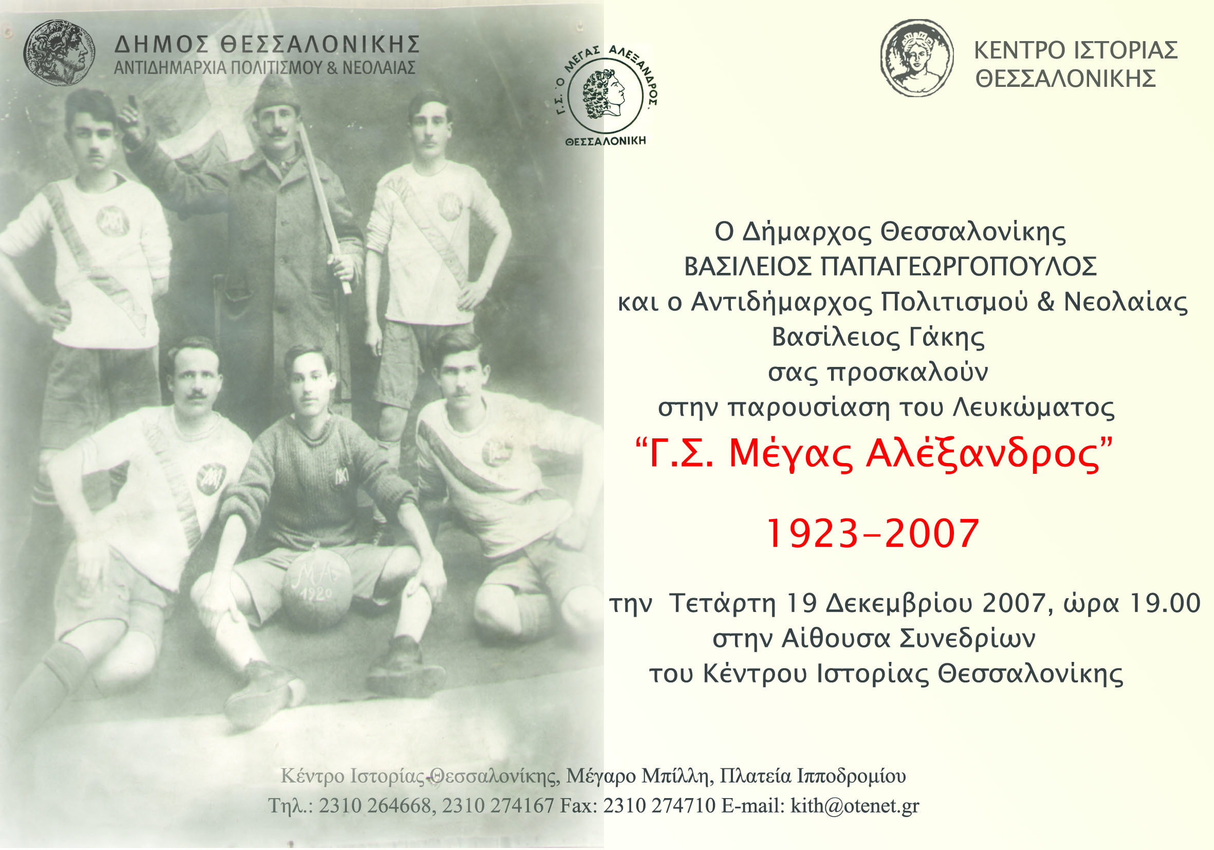 - Πρόσκληση παρουσίασης ιστορικού Λευκώματος «Γ.Σ. Μέγας Αλέξανδρος 1923-2007»